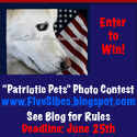 Don't forget our "Patriotic Pets" Photo Contest! We have some pawsome entries coming in, and if you haven't submitted your pet's photo yet, there's plenty of time to do so. Great prizes too (and some new additions coming)! We enjoy seeing your gorgeous pets all decked out for the Fourth of July holiday! We will post the slideshow on July 4, along with the names of the winners! Just click on the title header or the link above for details, judging info, and prizes. Good luck everyone!