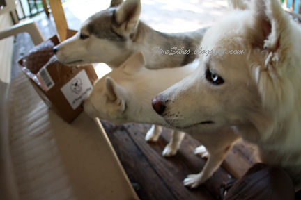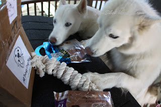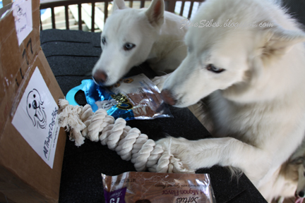 The three pupsters had lots of fun sniffing out the goods, curious as to what could be in the box!