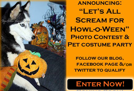 All entries should be Emailed to FiveSibes(at)gmail(dot)com with "Howl-o-ween Contest" in subject line. Please include your pet's name and a contact Email address (that will not be shared with others. It is for our use to notify winners).