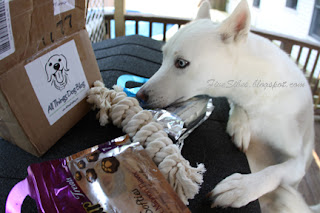 The surprise package sure made the FiveSibes' day! Many thanks to All Things Dog! Be sure to pop over and check out some of the pawsome giveaways.