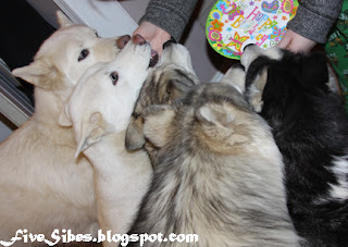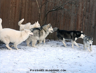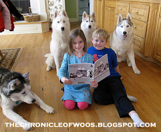 Our first stop...visiting with The OP Pack over at The Chronicle of Woos blog - and wow! What a great way to start! Please stop over and check out their Wednesday Woos Storytime post and the wonderful photos of their adorable family with their beautiful Huskies! Be sure to let them know the FiveSibes sent you! You will love their stories and photos of life with four Siberian Huskies!