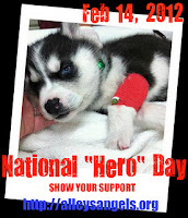 February 14th is Valentine's Day and a day for showing love...so it is a perfect day to be proclaimed as "Hero Day." For this event, organized by Siberian Nation, everyone is asked to make this photo of Hero their default photo on Facebook and to post it on their websites and blogs to honor this courageous little Husky pup.