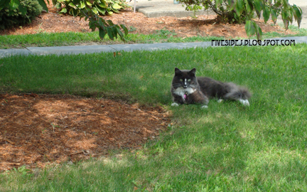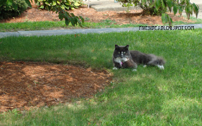 As many of you know, Smokie was a starving, abandoned young cat when my daughter rescued her. She has been a loving part of our lives for over four years. She loved to roll in the grass, get her tummy rubbed, and we always joked that she was our "watch" cat as she was always patrolling and sunning herself in the front of our property as though she was the owner! We also dubbed her our honorary Husky cat as her long, thick beautiful coat made her fit right in our family of Sibes.