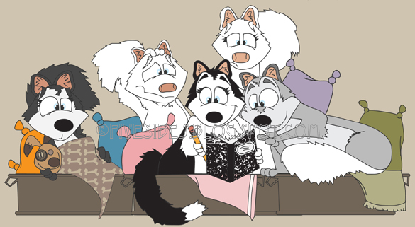 First, the characters are all based on my real five Siberian Huskies known as the FiveSibes. They are Harley, Gibson, and (the three littermates known as "The Pupsters") Wolf, Chloe, and Bandit. The audience is children, and those young at heart can enjoy them too!