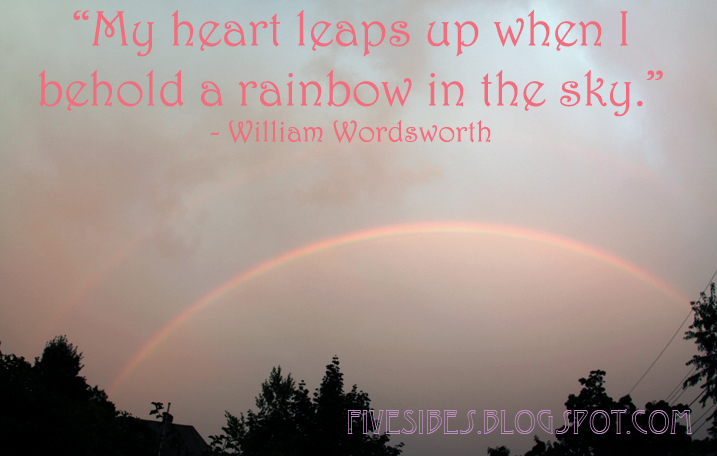I believe William Wordsworth had it right. Every time I see a rainbow my heart does indeed leap. When we lose a faithful companion, I'd like to think it's their way of sending us a message of their safe arrival beyond the Rainbow Bridge and how they will always be with us...and the rainbow serves as a beautiful reminder of that.
