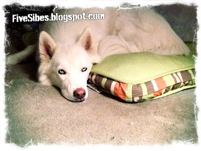 Change. According to Dictionary.com, the definition of change is, "to make the form, nature, content, future course, etc., of (something) different from what it is or from what it would be if left alone." According to my boy, Wolf, "change" is a four-letter word. And, well... apparently I did not get the "change" memo, or just chose to ignore it because I decided to do some early Autumn cleaning and rearranged my room, which included moving his bed. Mind you, I only moved it about five feet and it was to give him more room and get his bed away from the heating vent before the upcoming cooler season (I thought I'd get a head start). So my moving his bed really was to benefit him. But as you can see from his photo taken last night when he first went to bed (and discovered it had been moved), his look says he's pretty unhappy with me. Then, he proceeded to get up walk over the my nightstand, which is now in the spot that previously housed his bed, and he used his nose to push not one, but two of my framed photos off the end table, then sat down and sighed. Yep. I am definitely in trouble.