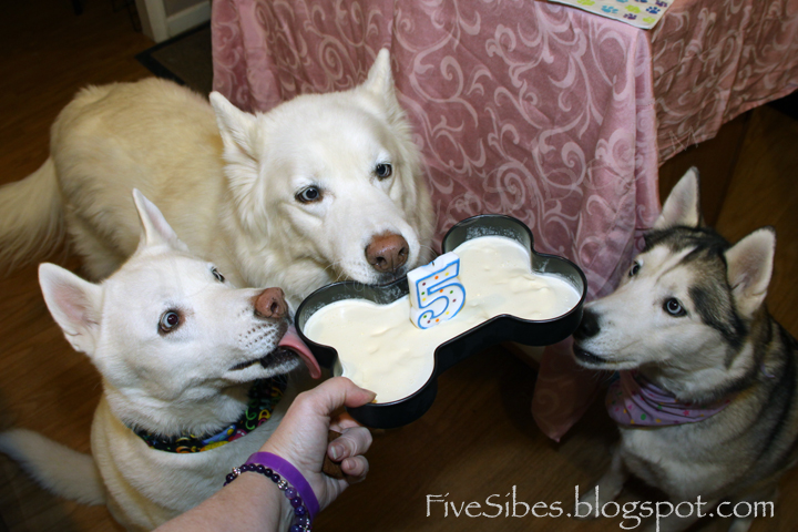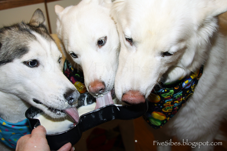 We celebrated with vanilla ice cream from our local dairy poured into a bone-shaped cake pan, special plates and napkins, and of course - presents!