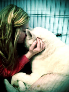 Flash forward seven years and flashback seven months, and the photo below is of my daughter sharing a tender moment with her other Sibe girl, Chloe, after Chloe underwent emergency bilateral cruciate imbrication surgery on both of her hind legs last summer. Such love.