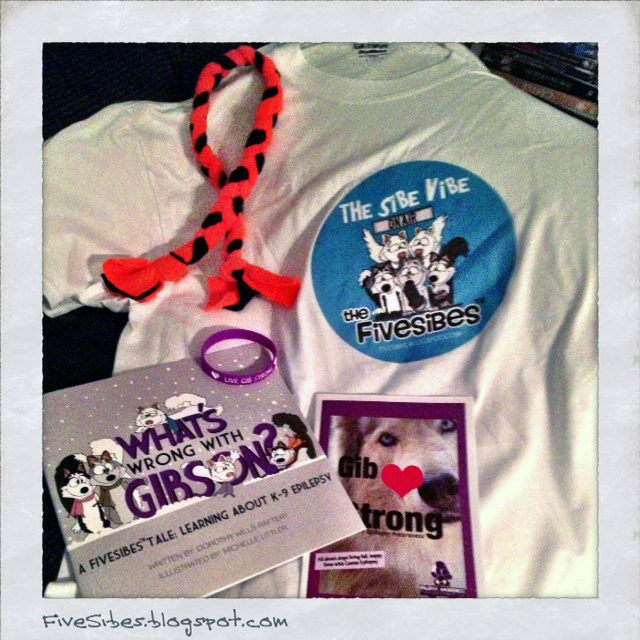 "Live Gib Strong" K-9 Epilepsy awareness bracelet, a "Live Gib Strong" K-9 Epilepsy Resource Booklet, one "The Sibe Vibe" radio show T-shirt, and a