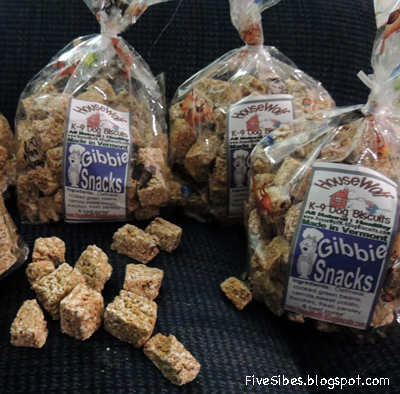 "Gibbie Snacks" are made by House Wolf K-9 Dog Biscuits, a part of the Edelweiss Bakery & Cafe in Vermont, good ol' USA! Yes, these treats are freshly made with all healthy and wholesome ingredients. The fabulous baking and creative team of Ralf and Ken of House Wolf were inspired by our Epi-Husky Gibson and researched healthy diets for Epi-dogs. They specially formulated "Gibbie Snacks" with the Epi-dog in mind!