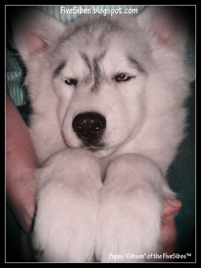 This is the sweet, beautiful, fluffy face that stole my heart immediately! This Flashback Friday photo of Gibson was taken when he was just four months old on the day after he came home with us. After a nice bath and tons of kisses, he was a very sleepy wooly Husky pup! He spent the entire first night sleeping on my lap on the living room recliner. He stretched out (he was already a big boy at just four months old - just check out the size of those paws!) across my lap and fell fast asleep...who could have the heart to move him? Not me! He was home, safe and loved from the very first moment I set eyes on him! Troy may have Helen...but, I have Gibson!