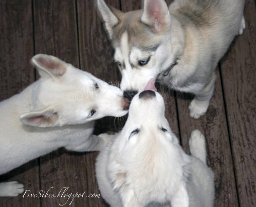 Today may be the last day of August, and while summer is almost over, you sure can't tell by the hot, muggy weather we've been having here! The Sibe kids' pool has once again been filled...and they have some new, cool Kong toys to play with, thanks to our friends Holly and the Huskies! These toys have been such a hit, both in and out of the pool! Many "thank wooos" to Holly, Nala, Ariel, Boo, Timber, and Chip for such a wonderful summertime surprise!!! Holly is new to blogging, so if you could stop by and give her a nice Bloggerville "welcome" and check out her beautiful Siberian Huskies, that would be great! Be sure to tell her FiveSibes sent you over! We hope everyone is enjoying the nice long Labor Day weekend!