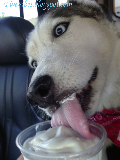 On the way home, I drove through the drive-in and picked my girl up a cup of vanilla ice cream as a special treat. Then, we went home and shared the rest with the rest of her Sibe family!