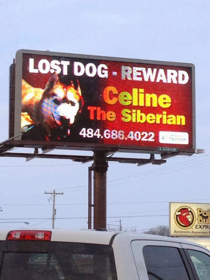 Up first is "Celine the Siberian." Celine was in a crate in the far back of a pick up while her family packed up from a dog show. No one saw her get out. Her family is frantic and missing her and offering a reward. Please see her photos below and share this post in an effort to join others in getting her photo and contact info out there...someone has to have seen her. Celine has to be somewhere. We pray she gets home safe and soon.