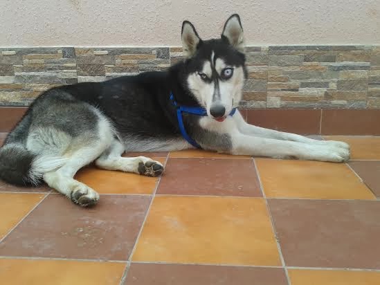 years old and he is an intact male. He has good teeth, but one of his eyes is bigger than the other, and the small one is somewhat inflamed and being treated. Unfortunately finding homes for a husky in Saudi Arabia is very difficult. The foster parent says Chupa Chups is a very lovely boy, who does need training. In general, the foster says keeping dogs as pets in the Saudi culture is very foreign, so they really want him to find him a home in a better climate as well and have reached out to rescue folks here in the United States to see if there is anyone who can help save Chupa Chups.