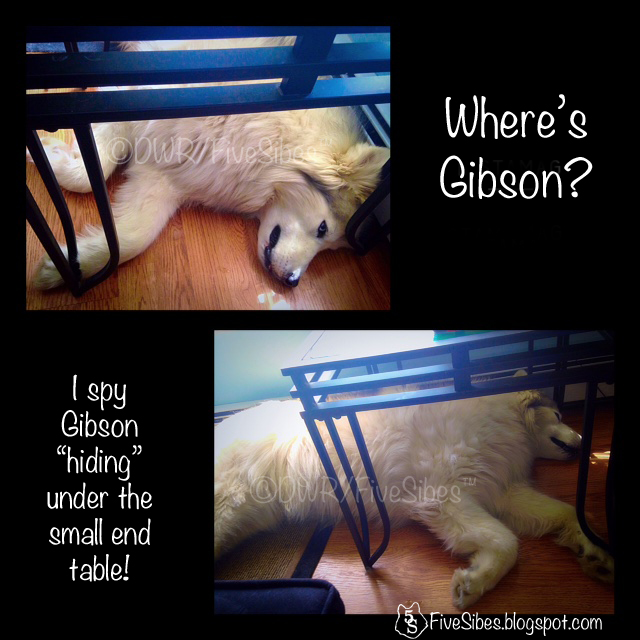 Isn't it funny how my largest Husky ~ Gibson ~ finds his comfy spot under the smallest end table?!