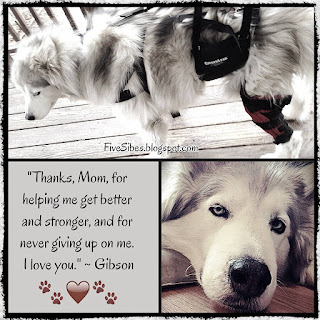 Seeing the lift harness hanging up by the back door actually makes me smile as I think about how far he's come. And then...it happened. Gibson ran like the happy Husky he is! Oh, joy!!! See here in this video (may not show up on all devices):
