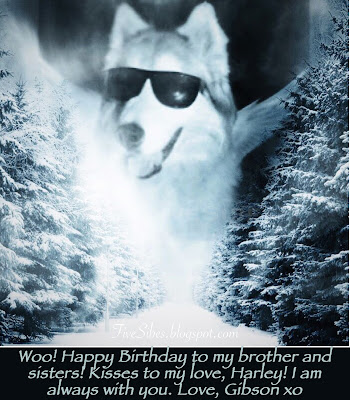 While today has been very difficult to get through without tears, and there have been lots of them, I also smile remembering all the wonderful, special times spent with Gibson and all my FiveSibes together as a family. It's so unfair that he is not here, but I know so many of us pet parents are going through similar times. Gibson had such a love and zest for life, even with all the health challenges he faced ~and beat~ except damned cancer. But since he was such a lover, I will honor him today with fond memories and smiles. I had planned on doing a birthday memorial tribute video, but my heart is too broken yet to get through more than one or two clips of him without bawling. He was such a special boy...and he holds a piece of my heart for eternity.