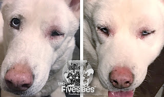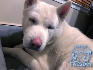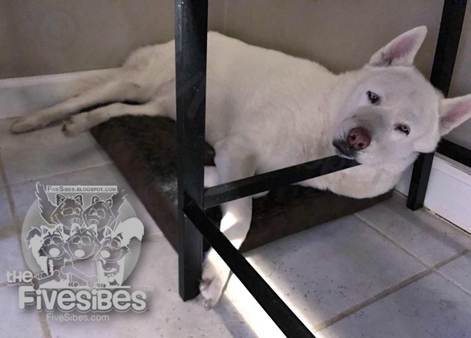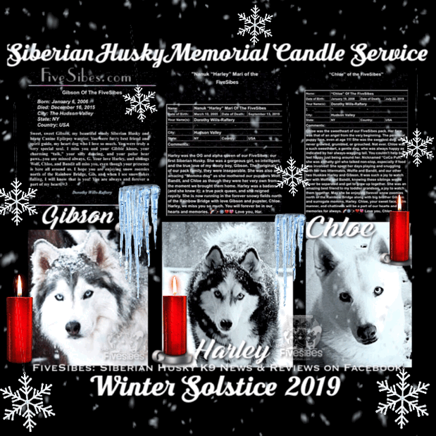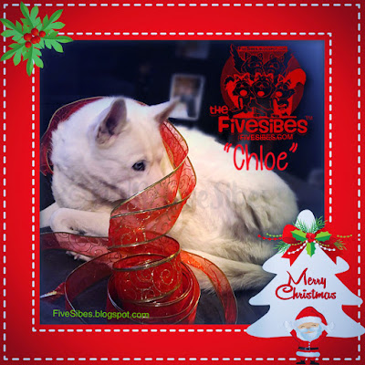 Our dear sweet pupster Chloe. I don't think there could have been a more kinder, sweeter, oblivious Husky! Chloe was a perpetually happy Husky, always talking with her tail always wagging, her eyes always bright, and I swear that girl was always smiling. Of course, I think she believed a treat was always at the end of a greeting, but regardless, Chloe was our pack's sweetheart. She was also the one that innocently always found herself in mischief or trouble. Always palling around with her brother and sister Wolf and Bandit, she would be the one to get tangled up in something that always left us laughing. Case in point, today's flashback photo...as we were turning around to gather up the ribbons for the tree trimming, this is how we found Chloe! Somehow, she managed to get the curly ribbons twirled all around her. I am writing this with a smile on my face, chuckling at the memory. With feeling sad as this is the first Christmas without her or Harley, it does warm my heart to remember just how silly and sweet that girl was. And when I see the red ribbons on this year's tree, I will always remember that moment with a smile.